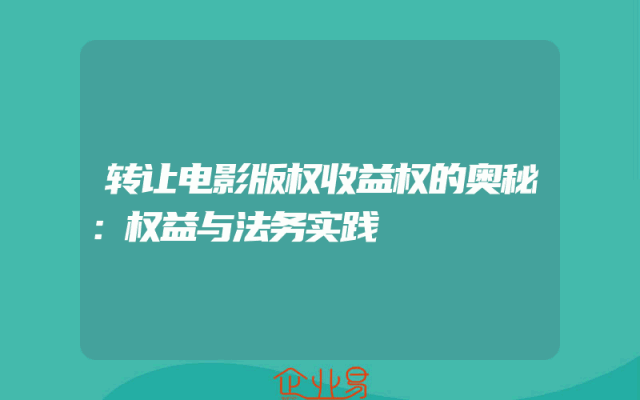 - 转让电影版权收益权的奥秘:权益与法务实践