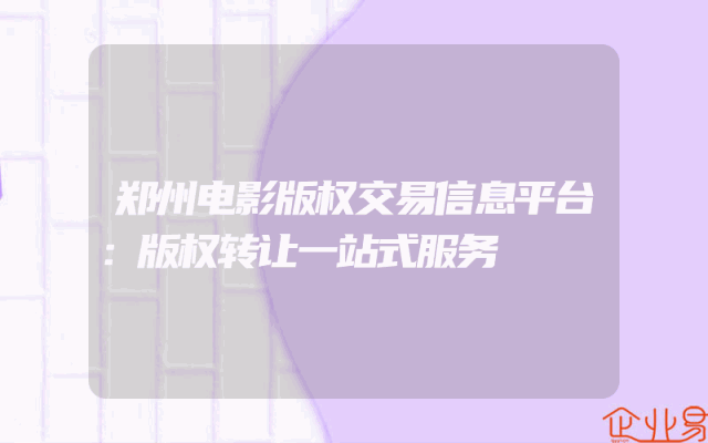 - 郑州电影版权交易信息平台:版权转让一站式服务