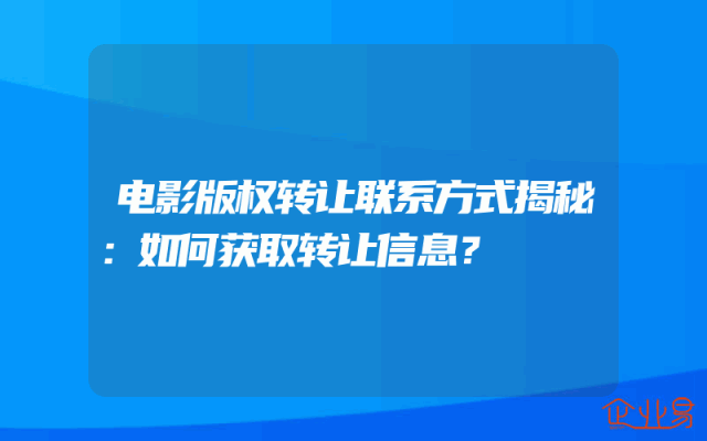 - 电影版权转让联系方式揭秘:如何获取转让信息?