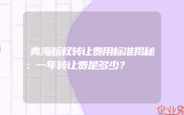 - 青海版权转让费用标准揭秘:一年转让费是多少?