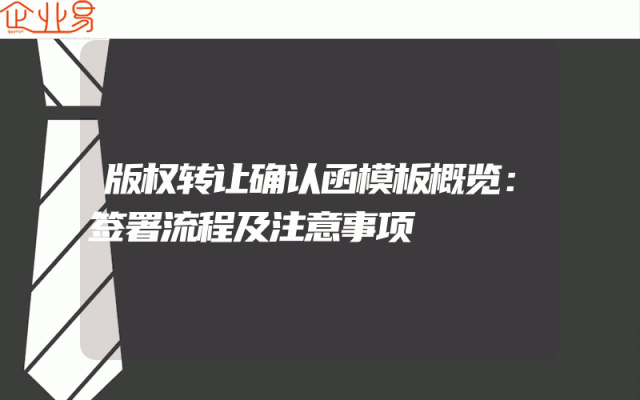 - 版权转让确认函模板概览:签署流程及注意事项在现代社会,知识产权的重要性日益凸显,版权转让作为其中的一项重要环节,亦随之受到广泛关注。本文旨在解析版权转让确认函模板的各个细节,并对签署流程和注意事项进