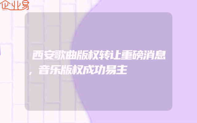 - 西安歌曲版权转让重磅消息,音乐版权成功易主