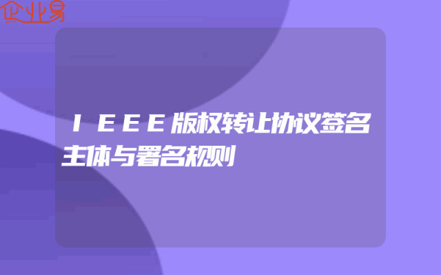- IEEE版权转让协议签名主体与署名规则解析一、IEEE版权转让协议概述随着科学技术的发展,知识产权的重要性愈发凸显。作为行业内的专业机构,IEEE制定了详细的版权转让协议。其中,签名主体与署名规则是协议的重要组成部分,它们确保了版权转让的合