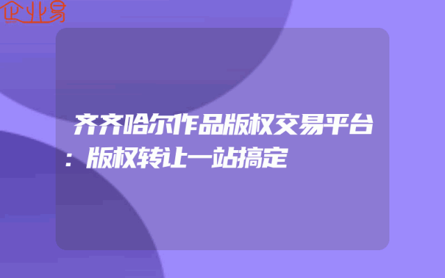 - 齐齐哈尔作品版权交易平台:版权转让一站搞定
