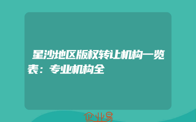 - 星沙地区版权转让机构一览表:专业机构全解析一、版权转让机构概述在星沙地区,随着知识产权意识的逐渐增强,版权转让活动日益频繁。为适应这一需求,众多版权转让机构纷纷涌现。这些机构在保护创作者权益、促进版权交易方面发挥着重要作用。本文将对这些专业