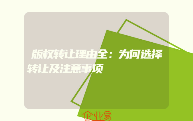 - 版权转让理由全解析:为何选择转让及注意事项一、版权转让的初衷与动机在知识产权领域,版权转让是创作者和所有者将其作品著作权的一项或多项权利转移给另一方的一种法律行为。选择版权转让,首先源于创作者希望将作品的后续发展、传播及商业化运作交由更专业
