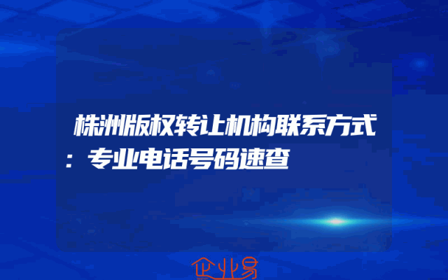 - 株洲版权转让机构联系方式:专业电话号码速查