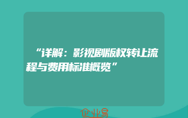 - 详解:影视剧版权转让流程与费用标准概览在影视产业中,版权转让是一项重要的商业活动,涉及复杂的流程和费用标准。本文将详细解析影视剧版权转让的流程及其费用标准,帮助读者更好地了解这一过程。一、影视剧版权转让