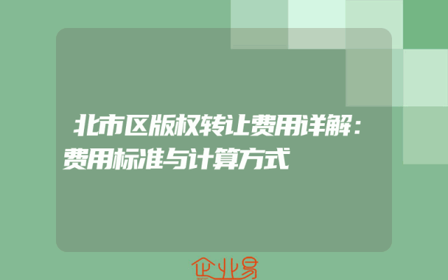 - 北市区版权转让费用详解:费用标准与计算方式一、版权转让费用的基本概念版权转让费用是指版权所有者将其著作的版权权利转让给他人时,按照一定标准和规定所收取的费用。在北市区,版权转让费用的设定主要依据作品类型、作品价值、转让方式等因素综合计算。二