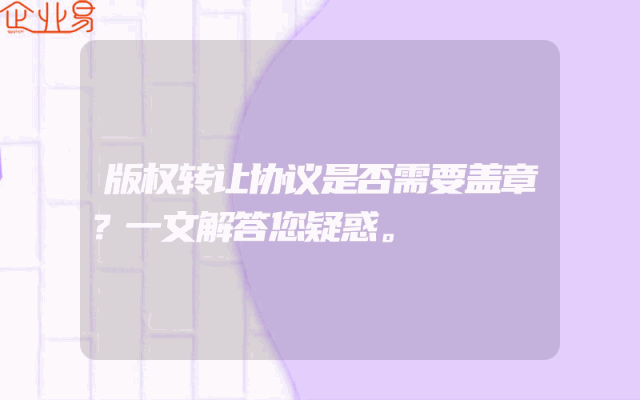 - 版权转让协议是否需要盖章?一文解答您疑惑。