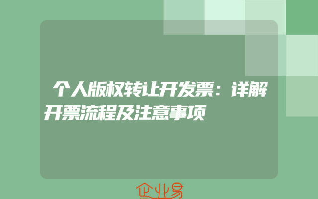 - 个人版权转让开发票详解:开票流程及注意事项一、了解版权转让与开票的重要性在知识产权领域,个人版权的转让是常见的一项交易活动。随着创意产业的蓬勃发展,个人创作成果如文学作品、艺术作品、软件代码等的价值逐渐得到社会认可。在版权转让过程中,开具发
