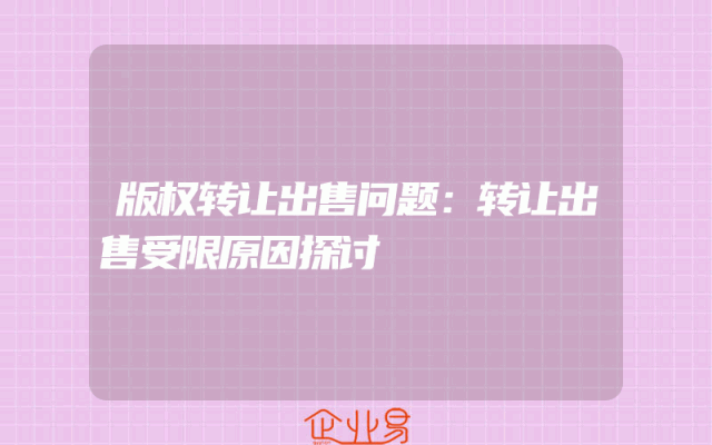 - 版权转让出售问题解析:转让出售受限原因探讨一、版权转让出售的基本概念版权转让出售是指知识产权所有者将其享有的著作权、专利权等知识产权权益,通过一定的方式和程序,转移给另一方的行为。在现代社会,随着知识产权的日益受到重视,版权转让出售成为了一