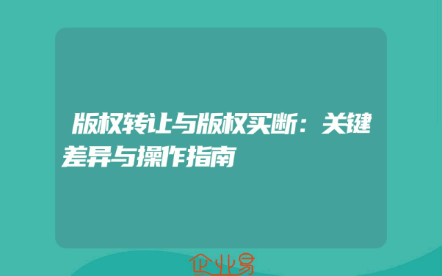 - 版权转让与版权买断:关键差异解析与操作指南一、版权转让与版权买断的基本概念在知识产权领域,版权转让和版权买断是常见的两种交易方式,它们涉及到作品的所有权和使用权。了解这两种交易方式的关键差异,对于版权方和受让方来说都至关重要。二、版权转让版