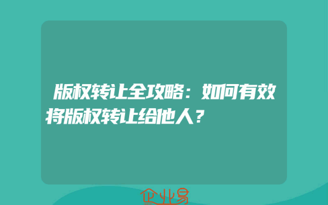 - 版权转让全攻略:如何有效将版权转让给他人?