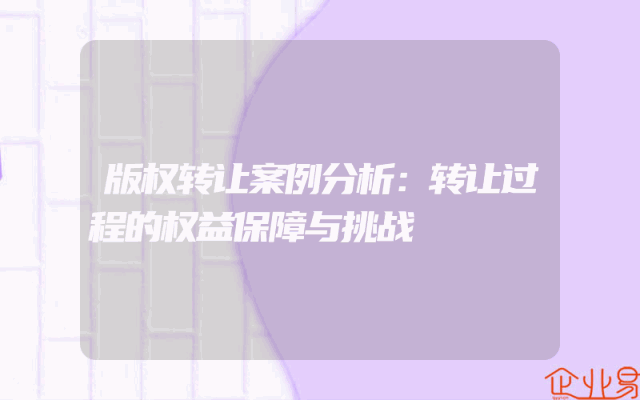 - 版权转让案例分析:转让过程的权益保障与挑战