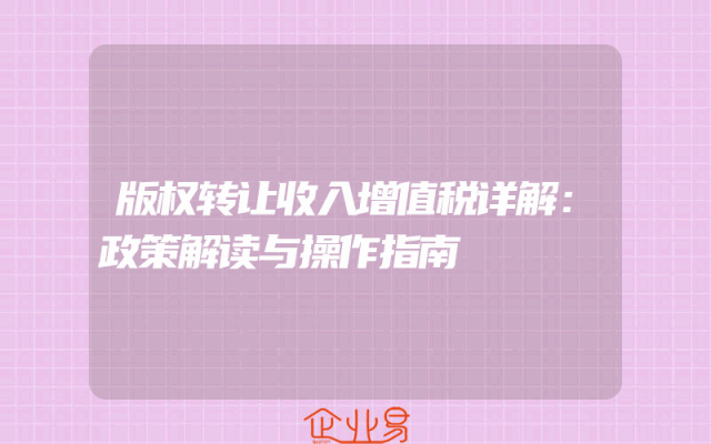 - 版权转让收入增值税详解:政策解读与操作指南