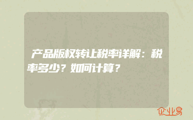 - 产品版权转让税率详解:税率多少?如何计算?