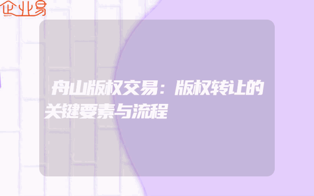 - 舟山版权交易:版权转让的关键要素与流程