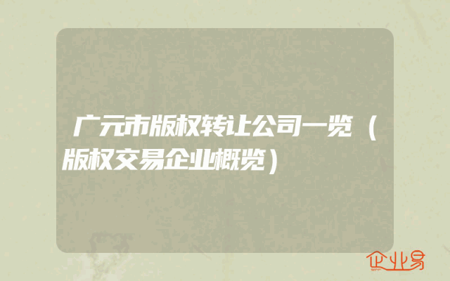 - 广元市版权转让公司一览(版权交易企业概览)