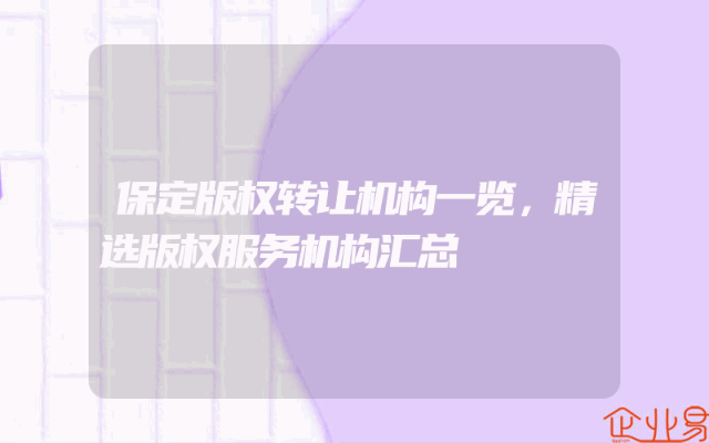- 保定版权转让机构一览,精选版权服务机构汇总