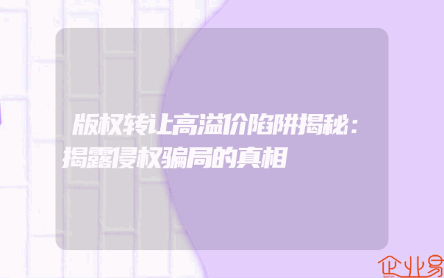 - 版权转让高溢价陷阱揭秘:揭露侵权骗局的真相