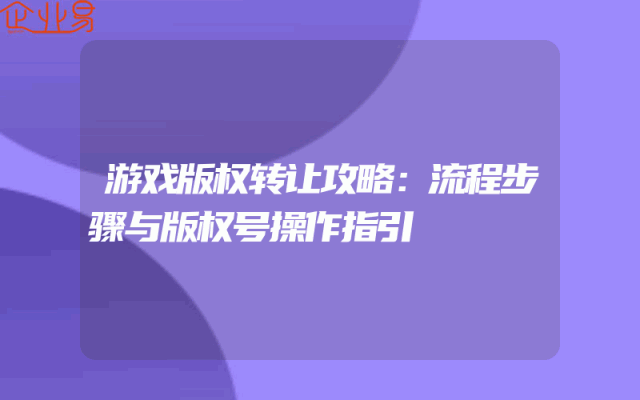 - 游戏版权转让攻略:流程步骤与版权号操作指引