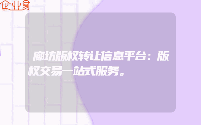 - 廊坊版权转让信息平台:版权交易一站式服务。