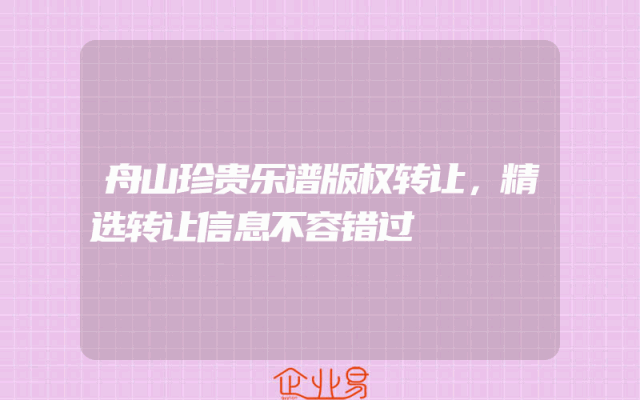 - 舟山珍贵乐谱版权转让,精选转让信息不容错过