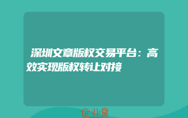 - 深圳文章版权交易平台:高效实现版权转让对接