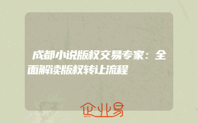 - 成都小说版权交易专家:全面解读版权转让流程
