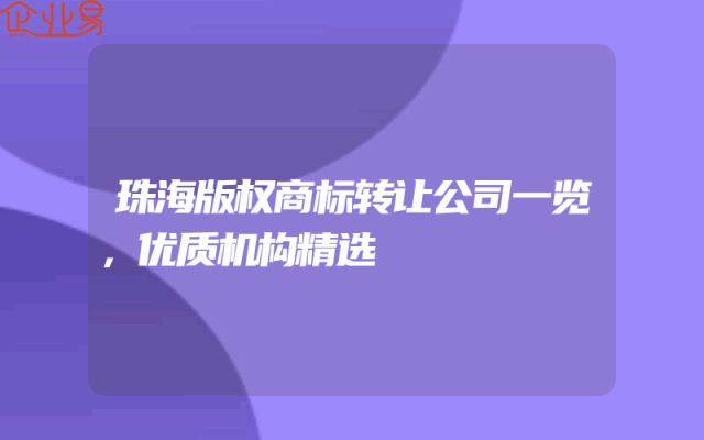 - 珠海版权商标转让公司一览,优质机构精选