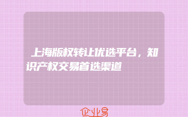 - 上海版权转让优选平台,知识产权交易首选渠道