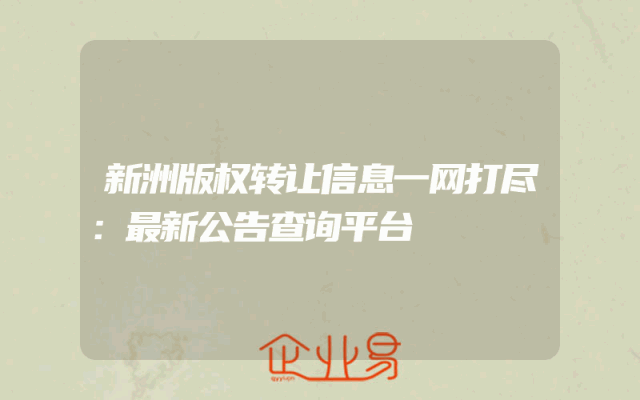 - 新洲版权转让信息一网打尽:最新公告查询平台