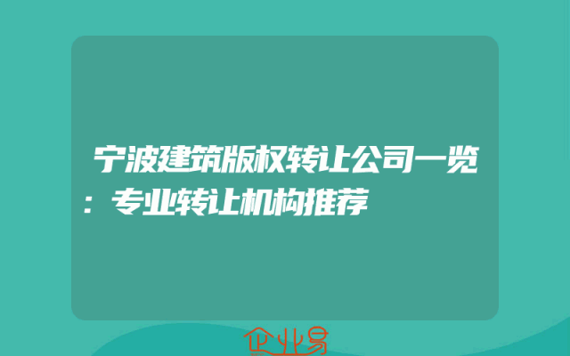- 宁波建筑版权转让公司一览:专业转让机构推荐
