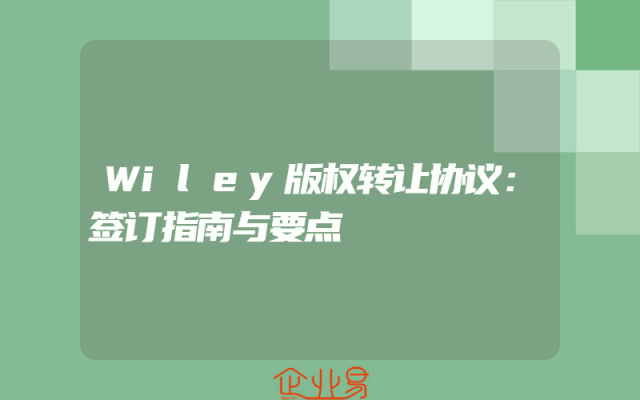 - Wiley版权转让协议:签订指南与要点