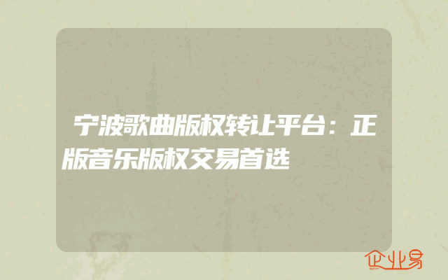 - 宁波歌曲版权转让平台:正版音乐版权交易首选
