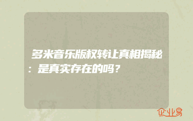 - 多米音乐版权转让真相揭秘:是真实存在的吗?