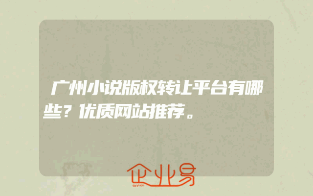 - 广州小说版权转让平台有哪些?优质网站推荐。
