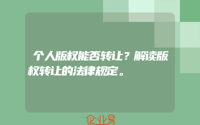 - 个人版权能否转让?解读版权转让的法律规定。