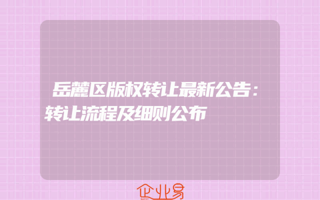 - 岳麓区版权转让最新公告:转让流程及细则公布