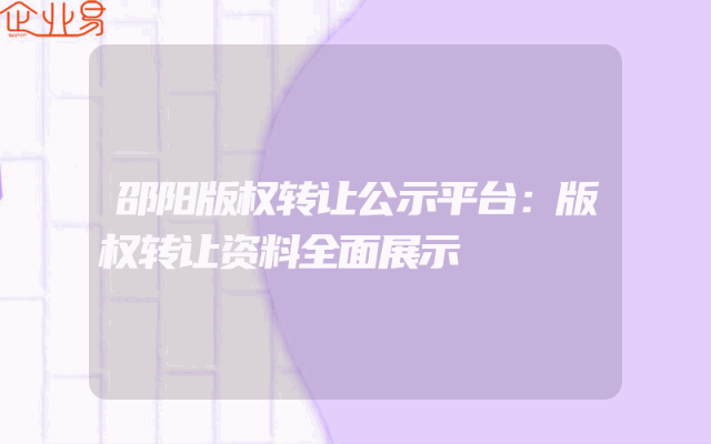 - 邵阳版权转让公示平台:版权转让资料全面展示