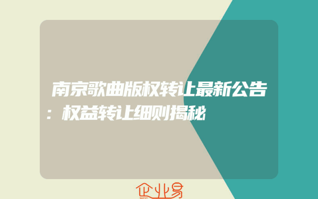 - 南京歌曲版权转让最新公告:权益转让细则揭秘