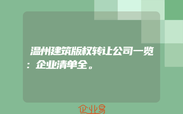 - 温州建筑版权转让公司一览:企业清单全。