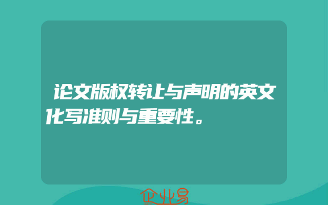 - 论文版权转让与声明的英文化写准则与重要性。