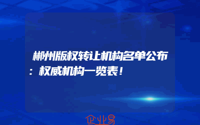 - 郴州版权转让机构名单公布:权威机构一览表!