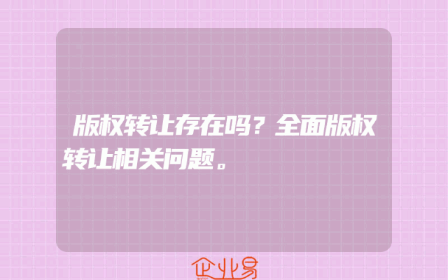 - 版权转让存在吗?全面版权转让相关问题。