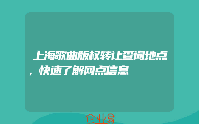 - 上海歌曲版权转让查询地点,快速了解网点信息