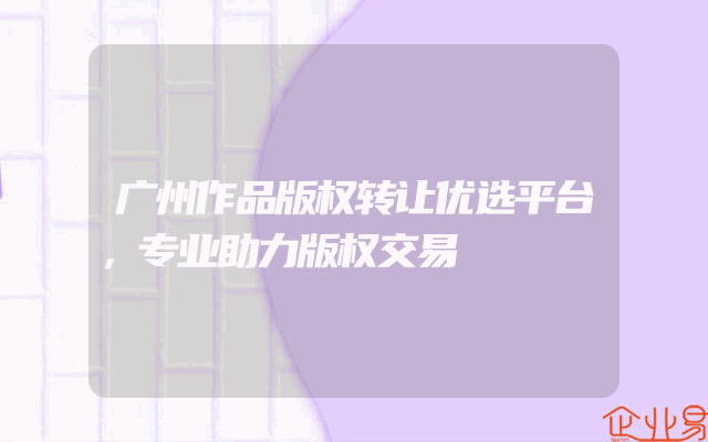 - 广州作品版权转让优选平台,专业助力版权交易
