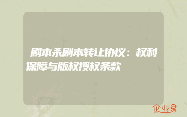 - 剧本杀剧本转让协议:权利保障与版权授权条款