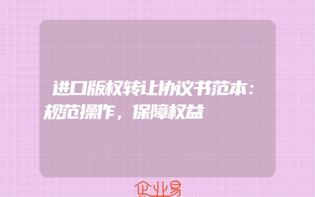 - 进口版权转让协议书范本:规范操作,保障权益